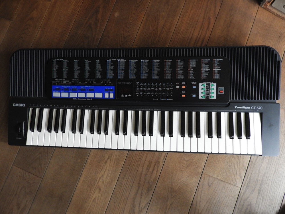Vintage Casio ToneBank CT-670, eind jaren ’80 model met de kenmerkende warme en heldere Casio-klanken. Voorzien van een breed scala aan geluiden, automatische ritmes en begeleidingsfuncties.