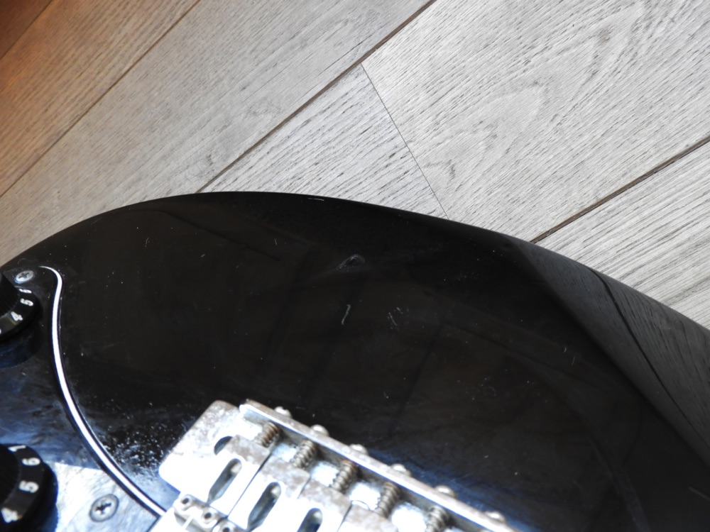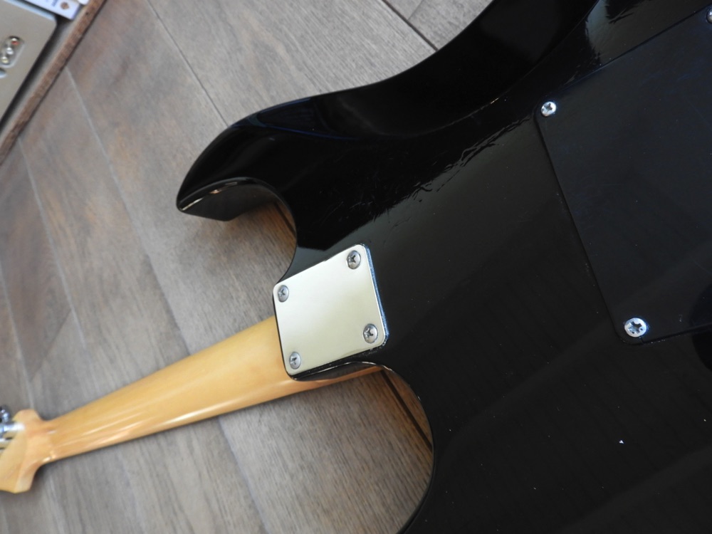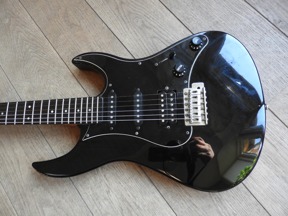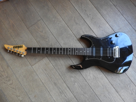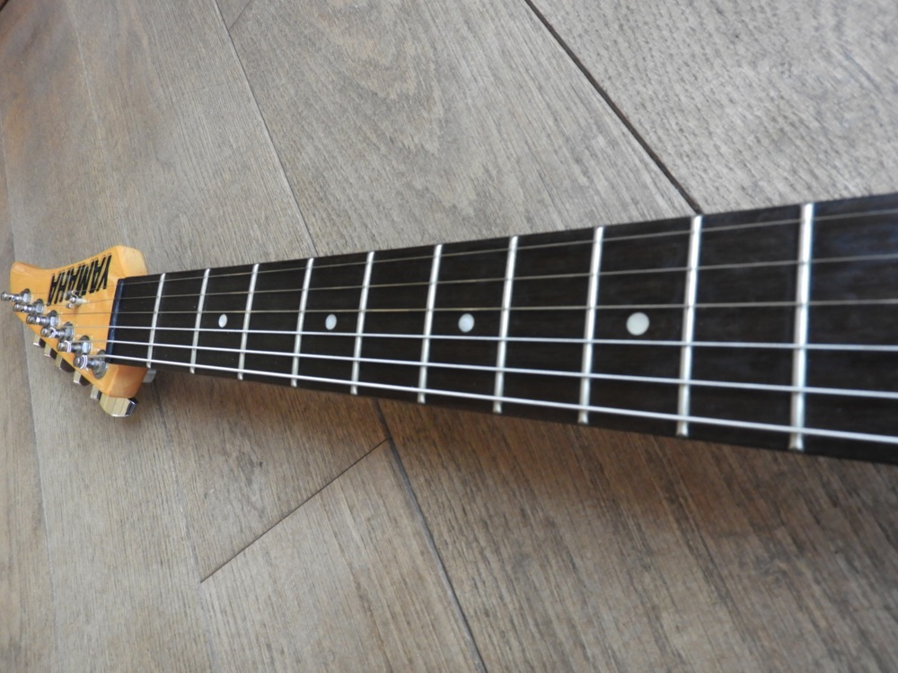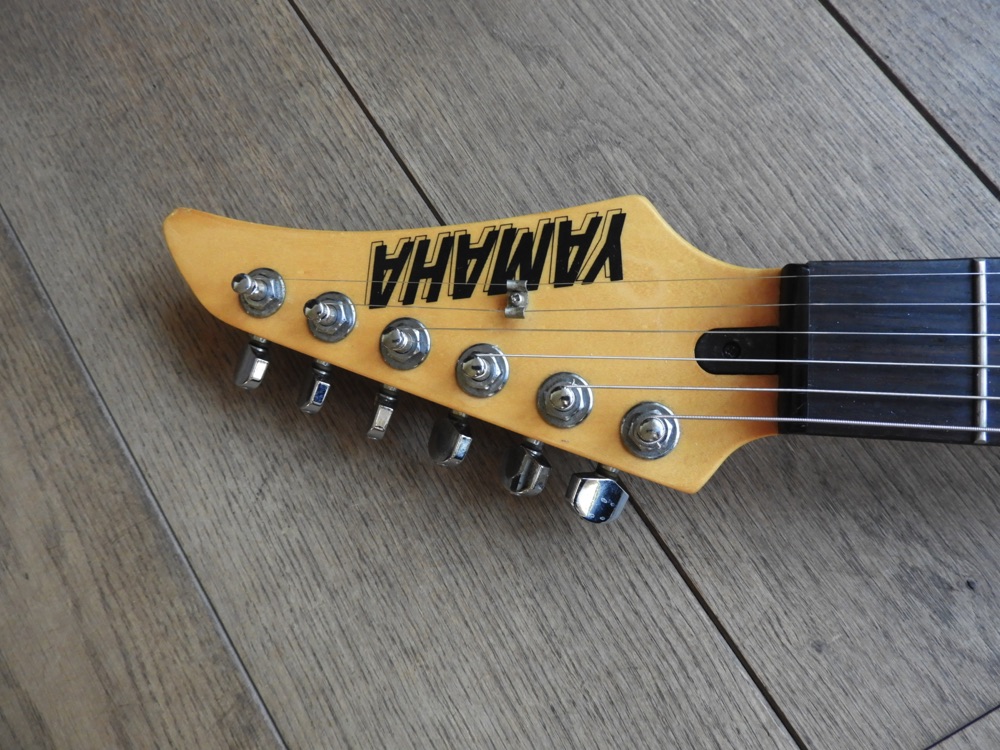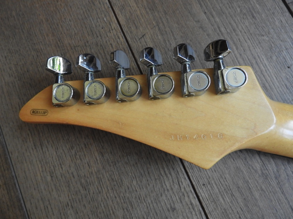 Mooie Yamaha RXG112P uit eind jaren 80 of begin jaren 90. Hij heeft wat cosmetische gebruikssporen, maar speelt nog prima. Ik heb de toonpotmeter vervangen omdat deze kapot was. De tremolohendel ontbreekt. Ook de riemknoppen zijn niet origineel.